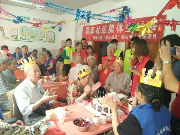 “祝你生日快乐……祝你生日快乐……”6月14日上午,阵阵美妙的音乐声从震泽社区居家养老服务中心里传出来。为了提升辖区内独居老人的幸福感,增强老年人对社区的归属感。震泽社区携手九色公益在社区居家养老服务中心开展了“情暖夕阳,爱不孤单”社区独居老人集体生日会,本次活动共邀请了十三位独居老人参加。