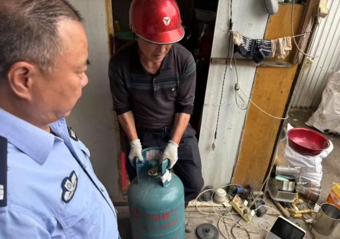 社区网格员先后对辖区内的餐饮门店、居民楼及重点区域核查公共场所灭火器配备是否齐全、压力值是否正常,同步清理电动车违规停放、堵塞消防通道等问题。网格员在走访过程中发现西木路26号废金属回收站内存在违规使用钢瓶燃气的现象,有较大的安全隐患风险。社区网格员立即会同社区民警上门整治,有效的将安全隐患扼杀在萌芽状态,确保居民的生命财产安全不受威胁。
