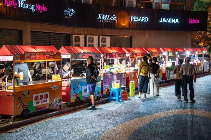 睦邻市集区的“月满市集·桂香满铺”,烟火气中藏着舌尖与心间的满足。汪阿大手作的古法酒酿甜香漫过街角;榴皇树的榴莲月饼裹着醇厚果香,搭配初见嫁衣的青海老酸奶,酸甜滋味在舌尖化开。马叶莹餐饮店的黑猪肉馄饨、老蒋包子铺的黑猪肉包子暖了肠胃,快鱼的服饰、谢宴的水晶首饰、富力熊的零食则装满购物袋,把欢喜带回家。