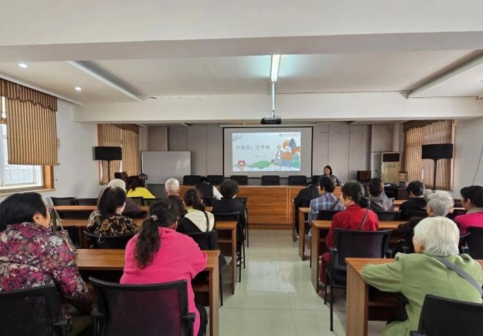 为提升社区老年人健康管理意识,持续提升老年人晚年生活质量,2025年11月12日,宜北社区在三楼活动室开展"小血压,大学问——居家自测血压避坑指南"专题讲座。活动特邀中医院副主任护师吴玉立主讲,吸引了20余名老年居民参与。