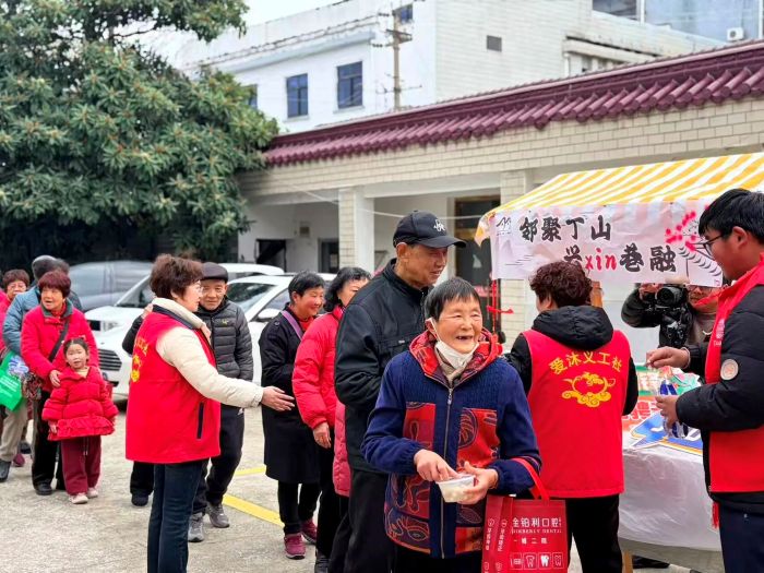 活动现场,义工们有序为参与现场居民分发热汤圆,一碗碗软糯香甜的汤圆,传递着元宵佳节的团圆暖意。