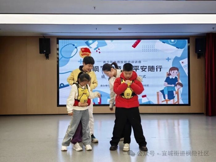 市120急救中心培训官,手把手向枫隐“少年急救官”传授应急救护要领,规范学习拨打120急救电话的正确话术,掌握“告知地址、说明伤情、等待救援”的完整流程,培养冷静应对突发情况的能力。海姆立克急救法也叫腹部冲击法,是一种专门用于抢救急性气道异物梗阻的急救技术,也是目前世界上公认最有效的抢救方法之一。它通过特定手法产生定向气流,能快速排出阻塞气道的异物,为窒息患者争取宝贵的救治时间,因此被人们亲切地称为“生命的拥抱”。