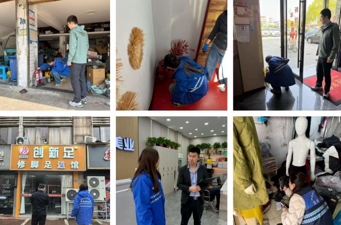 在沿街九小场所,重点查看用火用电用气安全管理、消防器材配备及完好有效情况,细致排查违规使用大功率电器、线路私拉乱接、堵塞疏散通道等突出隐患,切实拧紧小型经营场所安全 “安全阀”。