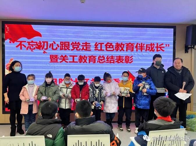 总结表彰大会上,关工老师和社区工作人员为新年慰问军属的学生们颁发学习文具,鼓励辖区的中小学生勇敢大胆自信,利用课余资源,积极表现自我,展示自我才能。通过捡烟头兑换学习用品的方式,呼吁未成年人爱护环境,养成文明好习惯。小节之处显大德,细微之处见文明。新时代呼唤理想坚定的青年一代。