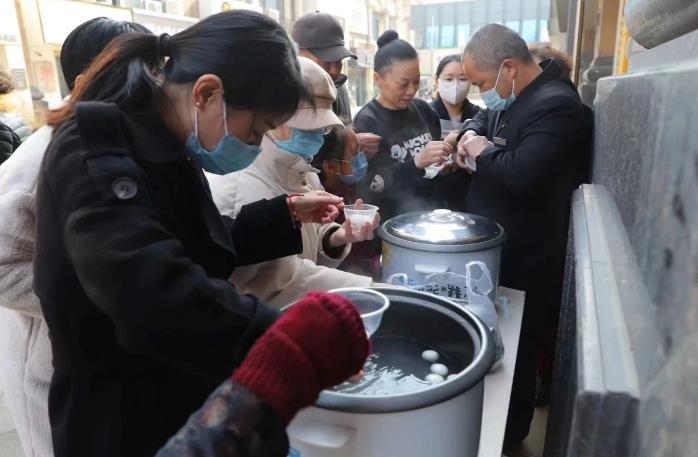 传统佳节当然离不开传统美食,猜灯谜的同时,社区工作人员和志愿者们也煮起了热腾腾的汤圆,并分发给大家品尝,居民们吃着汤圆,开心地说:“邻里一起品汤圆,聚在一起闹元宵很开心,感谢社区为大家创造了这么好的机会。”