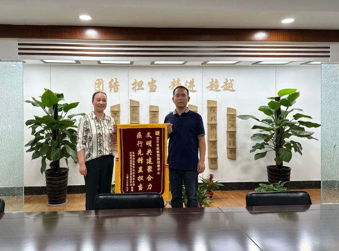 7月17日上午,新华社区党总支书记谈敏将一面写有“文明共建聚合力 疾行先锋显担当”的锦旗,送到了市疾控中心,锦旗上的字充分表达了社区居民对市疾控中心“疾行者”志愿团队的感激之情。