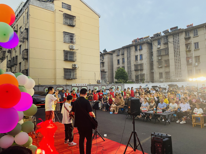 为打造温馨社区,拉拢邻里感情,增进感情,放松身心,结合社区居民的构成特点及居民对生活日益多元化等需求,7月25日晚,丁蜀镇组织人事和社会保障局、丁蜀镇社会事业局、丁蜀镇文化体育站、丁蜀镇社区教育中心、丁蜀镇湖渎社区、丁蜀镇正新嘉苑红色物业、湖渎社区退役军人服务站携手举办了一场融合了才艺展示、后备箱集市的睦邻篝火晚会。