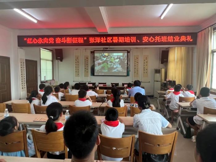 7月31日上午,张泽社区在丁蜀镇关工委、丁蜀镇社教中心、张泽中小学校、张泽村、大浦派出所、宙斯泵业等单位的大力支持下,举办“红心永向党 奋斗新征程”暑期培训暨安心托班结业典礼,各单位主要领导到场见证孩子们暑期在社区的成长。