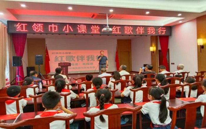 为帮助辖区青少年学生度过一个有意义的假期,丰富假期生活,近期以来,南新社区举办形式多样、内容丰富的“红领巾小课堂”。邀请原南新中学音乐教师吴耀康开展“红领巾小课堂 红歌伴我行”为主题的红色经典歌曲教唱活动。