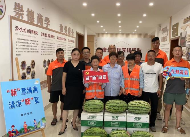夏日炎炎送清凉,丝丝关怀沁人心。近日,针对辖区新业态新就业群体,唐公社区党总支依托“红蜂筑巢 益‘新’向党”书记项目组织开展“‘新’意满满 清凉‘驿’夏”系列活动,为新业态新就业群体送去组织的关心关爱和炎炎夏日里的一丝清凉。
