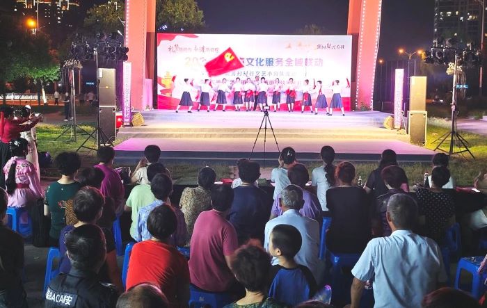 为深入开展“我们的节日 精神的家园”主题实践活动,进一步弘扬优秀传统文化,丰富居民文化生活,9月19日晚上,“礼赞新时代 奋进新征程”2023年宜兴市文化服务全域联动文化志愿服务村村行文艺小分队流动演出“氿畔初心”艺术团走进谈家干社区暨“歌舞飞扬迎中秋、携手共度团圆节”文艺晚会在氿珑湾文旅园举行。