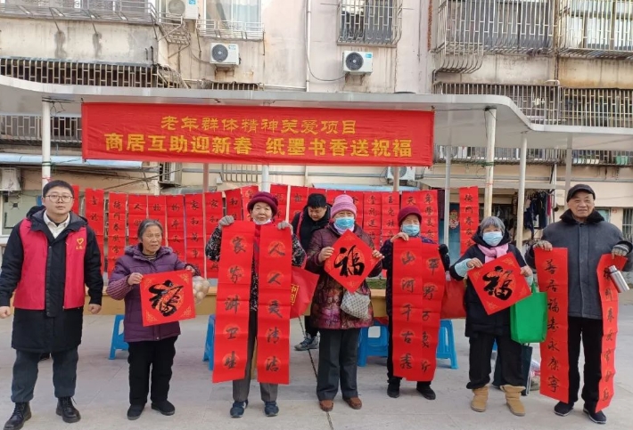 荆东社区开展“商居互助迎新春 纸墨书香送祝福”写春联活动