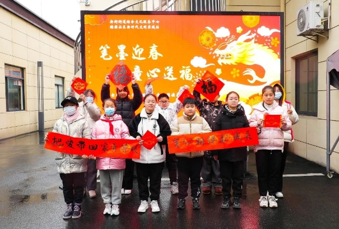 活动现场,书法老师们挥毫泼墨、笔走游龙,小朋友们在志愿者的指导下拓印福字,每一个作品都散发着浓郁的年味和无限的生机。不同字体、不同形式的“福”字和一幅幅寓意美好的春联,寄托了对新年的美好祝愿,也让孩子们近距离体验了传统文化的魅力,加深了对中华传统文化的了解,给即将到来的春节增添了更多欢乐与祥和的气氛。