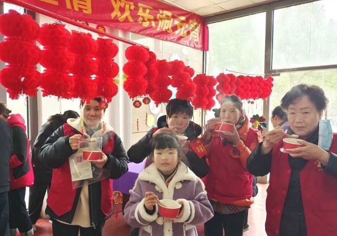 品元宵,喻意团团圆圆,平平安安,社区工作人员为居民端出浓香四溢的元宵,大家围在一起品元宵,感受节日的欢乐氛围。