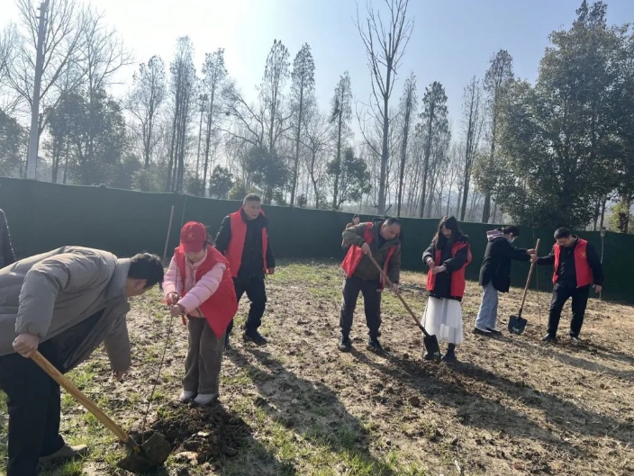 活动现场,大家热情高涨,在社区书记闵震涛的带领下,兴致勃勃投入到植树活动中。大家分工有序,有的挥锹挖坑、有的扶苗填土、有的搬水浇树,带着希望和美好,合力种下一棵棵树苗。放眼望去,处处是生机,处处是绿意。植树活动,不仅为社区环境增添了一抹绿意,更让大家深刻体会到了植树节的意义不仅仅是“种树”,更是爱护自然、绿化环境的体现。