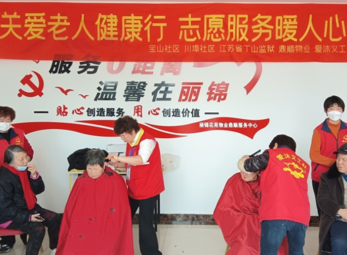 陶里春风红色物业志愿小队为小区居民提供理发、量血压、贴膜、磨菜刀、冲洗脚垫、补衣等一系列贴心、暖心、安心服务,志愿者们用他们娴熟的技术和热情的服务赢得了居民们的称赞,切实解决了居民的实际需求,增加了居民的幸福感。川埠社区、宝山社区、丁山监狱、爱沐义工社以及丽锦花苑红色物业党支部共同开展了针对丽锦老年同志的志愿服务,现场志愿者们为老人们准备了理发、按摩、测量血压、扦脚、磨菜刀等志愿服务,让老人们不出“家”门就能体验到“从头到脚”的贴心呵护。活动现场挤满了前来参加的老人们和不停忙碌着的志愿者,气氛十分融洽、和谐。