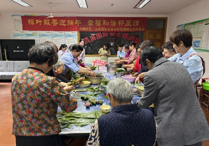端午近,粽香飘。在端午节来临之际,为弘扬中华民族优秀传统文化,深刻体验传统节日蕴含的历史意义,大同社区联合辖区银湖物业在氿滨国际开展我们的节日·端午“粽”趣横生 悦享端午——包粽子活动,筑牢文化自信,凝聚邻里情感。