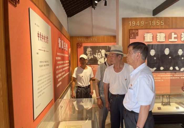 在讲解员的带领下,党员们仔细观看了展出的珍贵历史文物、照片和文献资料,认真学习了解潘汉年的生平事迹和卓越贡献,深刻感悟了潘汉年同志的光辉业绩、高尚品德和革命精神。