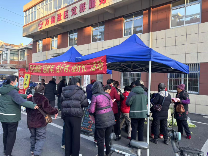 万善社区携手万石邮储银行开展辞旧迎新惠民蔬菜免费“大派送”活动