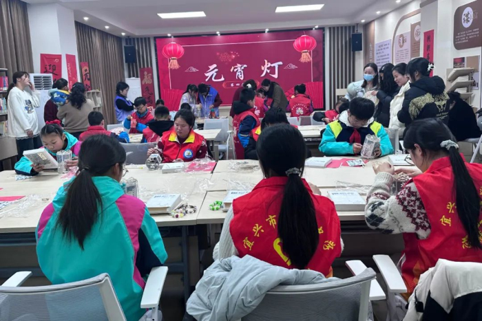 “正月十五挂灯笼的习俗象征着平安和幸福。”社区工作人员为在场学生详细讲解了灯笼的寓意,并现场演示了制作手工灯笼的步骤,学生按照制作步骤串线、贴纸、缠灯,原本不起眼的灯笼材料经过大家灵巧地制作、装饰,一个个漂亮的元宵灯呈现在眼前,小小元宵灯装点了温馨的氛围,同时也照亮了他们对新年的美好期许和无尽的祝福。