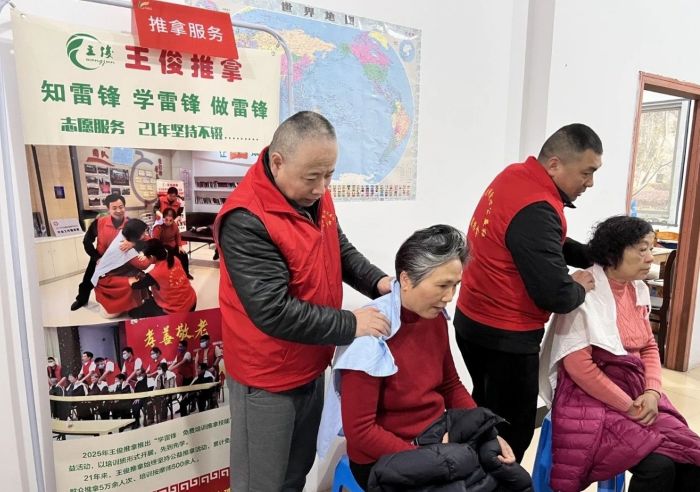 来自芭图造型的理发师们手法娴熟,为居民们精心修剪头发。他们耐心地与每一位居民沟通,根据个人需求打造出整洁美观的发型。磨刀服务负责磨刀的老师傅技艺娴熟,他接过居民递来的菜刀,先仔细端详刀刃的磨损情况,随后便稳稳地将菜刀固定在工具台上。随着砂轮的飞速转动,溅起星星点点的火花,老师傅凭借着多年的经验,精准地把控着角度与力度,让原本钝化的菜刀逐渐恢复锋利。推拿服务来自王俊推拿的按摩师傅们就用娴熟的专业推拿按摩技术为老人们“搓、揉、拿、捏”,仔细询问每位老年人的身体状况,有针对性地进行推拿按摩。