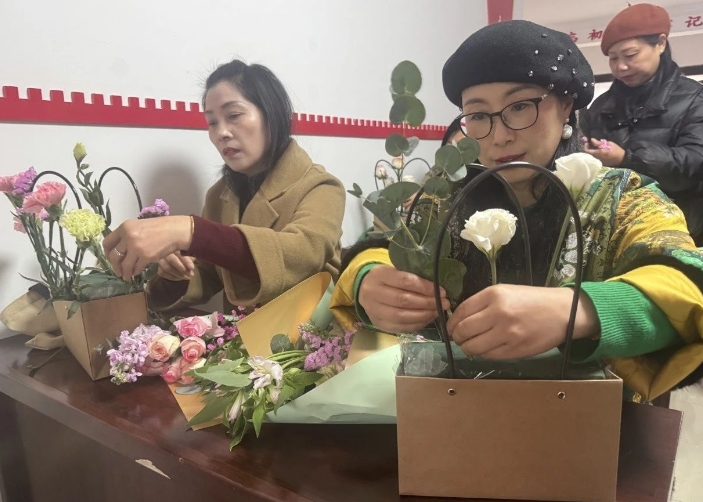 讲座结束后为展现社区女性居民巾帼风采,丰富辖区女性的业余生活,特开展了以“巾帼巧手展芳华 其乐融融庆三八”为主题的三八妇女节插花活动。本次活动不仅向大家传递了美好的祝福,更是增进了居民之间的相互交流,获得了大家的一致好评。