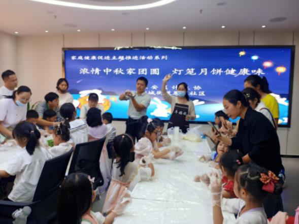 “八月十五月儿明呀,爷爷为我打月饼呀,月饼圆圆甜又香啊……”9月8日晚上,一曲稚嫩童声合唱拉开了淮安区计生协会与淮城街道恩来社区联合举办“浓情中秋家团圆·灯笼月饼健康味”庆中秋家庭健康促进行动的序幕,50多个社区小朋友与家长参加。