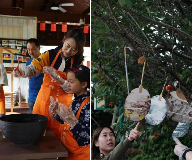 红岭茶旅文化研学基地举办亲子手做漆扇体验活动