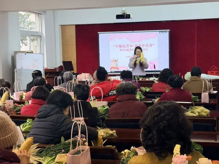 为庆祝“三八”国际妇女节,丰富辖区女性居民精神文化生活,3月5日,民主社区开展“巾帼绽芳华·蔬香伴花香”鲜花+蔬菜创意插花活动,邀请志愿者与居民共同动手,以花喻美、以蔬传情,共度温馨雅致的节日时光。