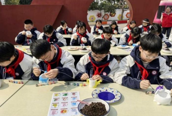 创意DIY,种下绿色希望。最具趣味的环保创意DIY环节,将活动氛围推向高潮。同学们拿起画笔在素胚花盆上挥洒创意,绘就专属“绿色载体”,随后亲手栽种多肉幼苗,认真写下环保心愿与护绿承诺,让每一盆多肉都承载着对自然的热爱与期许。