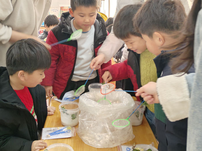 活动高潮,孩子们卷起袖子,小心翼翼地将晶莹的石子铺在生态瓶底。嫩绿的水草被放入瓶中,随着水流轻轻摇曳。在捞小鱼环节,孩子们兴奋地围在水盆边,用小网兜轻轻捞起一尾尾灵动的小鱼。突然,一个小男孩惊喜地叫起来:“我捞到小虾米了!”孩子们立刻好奇地围拢过去,盯着瓶里的小虾米,惊叹声此起彼伏。最后,大家将小鸭子、小贝壳装饰物放入瓶中,五彩的小贝壳躺在石子上,与摇曳的水草、灵动的小鱼一起,构成一个个生机勃勃的微型水世界。