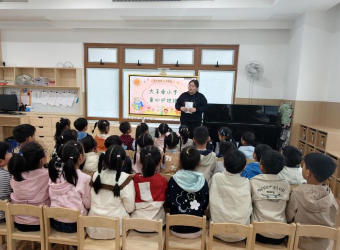 随后,工作人员结合视频内容,进一步讲解了地球“生病”的原因——垃圾污染、水资源浪费、森林砍伐等。在互动提问环节,孩子们踊跃举手,分享自己能为地球做的事:“不乱扔垃圾”“节约用水”“少用塑料袋”“要多种树”……童言稚语中,蕴含着对环保最朴素而真诚的理解。
