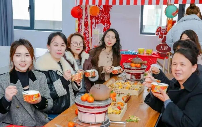 红枣、橘皮在壶中翻滚,茶香四溢。女性朋友们围炉而坐,一边烤着年糕、棉花糖,一边聊着工作与生活。炉火映红了脸庞,也温暖了心田。棉花糖机前排起了长队,孩子们踮着脚尖,看着一缕缕糖丝缠绕成云朵般的棉花糖。拿到手的孩子迫不及待地咬上一口,甜丝丝的笑容比棉花糖更灿烂。