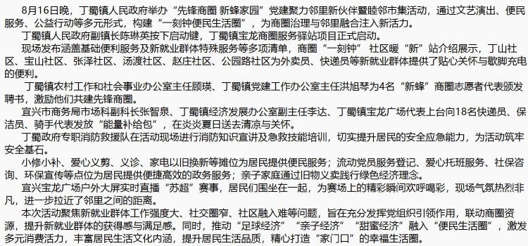 丁蜀镇举办“先锋商圈 新蜂家园”党建聚力邻里新伙伴暨睦邻市集活动