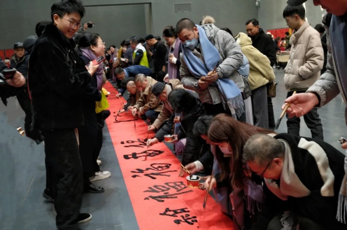 一个个饱含神韵的“福”字、一副副寓意吉祥的春联,书法家们用精湛的技艺,将新春的祝福实实在在送到群众心坎里,现场气氛热闹而喜悦。