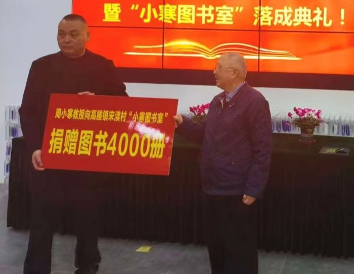 今年85岁的周小寒教授祖籍宋渎村,他长期从事肿瘤学领域的临床、教学和科研工作。1965年毕业于上海第一医学院医疗系,毕业后一直在上海市第一人民医院内科工作,后师从著名消化病专家巫协宁教授和王国良教授,专攻消化内科。1994年,他在院领导支持下组建了上海市第一人民医院肿瘤科,并担任科室主任,推动科室在医教研方面跻身上海肿瘤界先进行列。周教授虽然身在上海,但心系家乡。尤其如今到了晚年,这种心情更加强烈,为此,他决定向家乡捐赠农业技术、文化科普等各类图书4000册,以此完成自己的一大心愿。