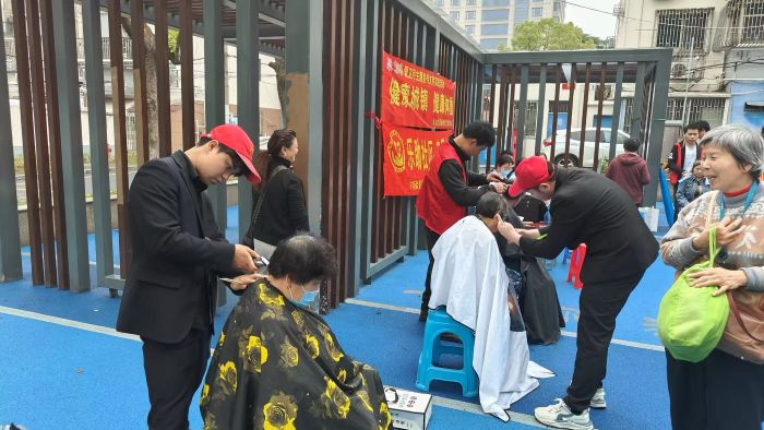每到周三,社区附近的居民都会来到社区的网格小屋有序排队,享受张渚志愿服务队带来的便利。志愿者们认真细致地为居民测量血压和血氧;将居民送来的刀具、剪刀上的铁锈等仔细打磨;针对居民的需求,志愿者为他们开展“私人订制”理发,看着镜子里的新形象,大家都露出了满意的笑容。经常有居民这样夸赞志愿者们:“现在城市里很少能找到专门提供磨刀的店家,如今在家门口就经常能参加量血压、磨刀理发等免费活动,带来了很多的方便和实惠。”
