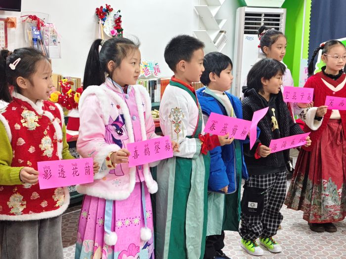 2月3日下午,南通市崇川区新城桥街道易家桥社区关工委联合欣欣然校外教育辅导站开展“笠温对韵 立春有约”主题阅读活动,十余组亲子家庭齐聚一堂,在国学经典与节气民俗的碰撞中,迎接立春节气的到来。