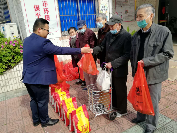 比赛结束后,又开展了关爱社区弱势群体献爱心活动,大家把鱼和大米一一送到了社区困难家庭手中。