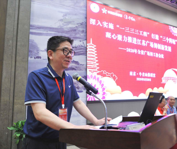 熊伟副局长的讲话,充分肯定了全省广场舞2019年的成绩和在抗击新冠疫情中广场舞开展“我舞我秀”、线上公益系列直播培训等创新举措,并对今后的广场舞活动提出了要求。他指出,当前,在疫情防控阻击战取得重大战略成果的形势下,召开2020年全省广场舞工作会议,总结2019年和今年以来全省广场舞的主要工作经验,肯定成绩,表彰先进,凝聚起团结鼓劲积极向上的正能量,为今年后一阶段工作再启航扬帆注入强劲动力,很重要。2019年以来,全省广场舞活动,把老百姓的需求,当作广场舞活动的追求,不断创新思路,“一三三三工程”受到越来越多的基层欢迎并深入实施;用广场舞歌颂党歌颂祖国歌颂社会主义,大力营造了广场舞庆祝新中国成立70周年的浓厚氛围;把广场舞公益培训的过程当作“三热爱”教育的过程,广场舞广场变成了“三热爱”教育的课堂,广场舞“同唱共产党好”、“同唱祖国好”“同唱社会主义好”响彻江苏大地;广场舞参与社区治理,广场舞活动从无序到有序,“烦心工程”变成了“民心工程”;广场舞融入新时代文明实践活动取得新成效,展示了广场舞的新作为。“庆新中国70华诞,共舞祖国好”2019广场舞公益培训进社区进乡村活动,建立五级培训体系,组织“公益培训大篷车”和广场舞志愿者,开展送舞送教送方法送思想送精神“五送”到社区、到乡村,创新了广场舞公益培训“五个程序”、“六个统一”方法,实行科学管理,做到程序化、标准化、规范化。广场舞公益培训2700多场,培训广场舞骨干35万人,推进了广场舞大普及、大推广、大提升。